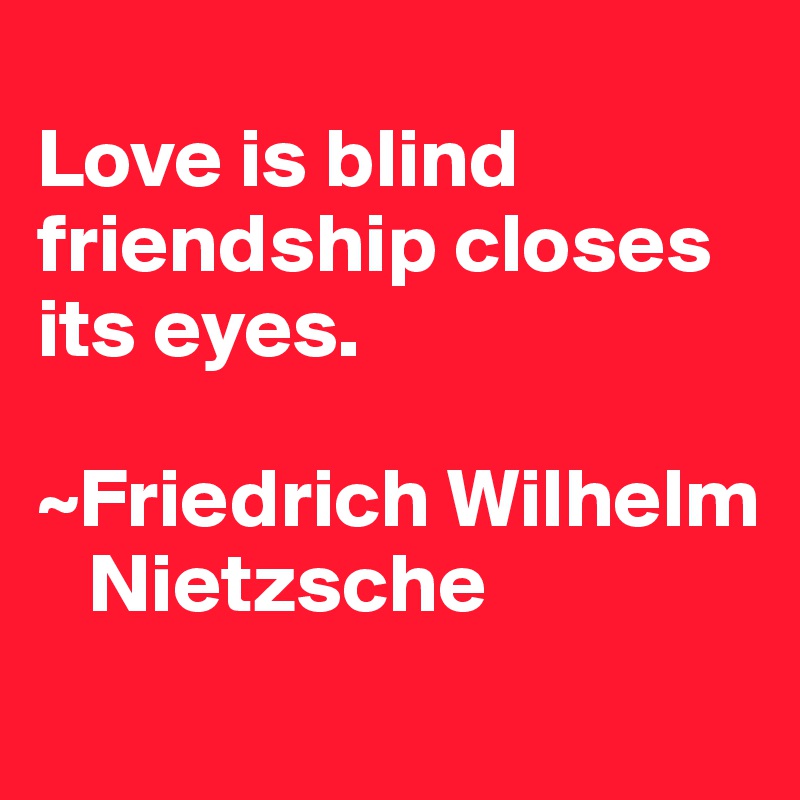 Love is blind friendship closes its eyes This is a quote by Friedrich Nietzsche which is about Friendship Love. Love is blind. This site uses cookies to improve your experience and to help show content that is more relevant to your interests.