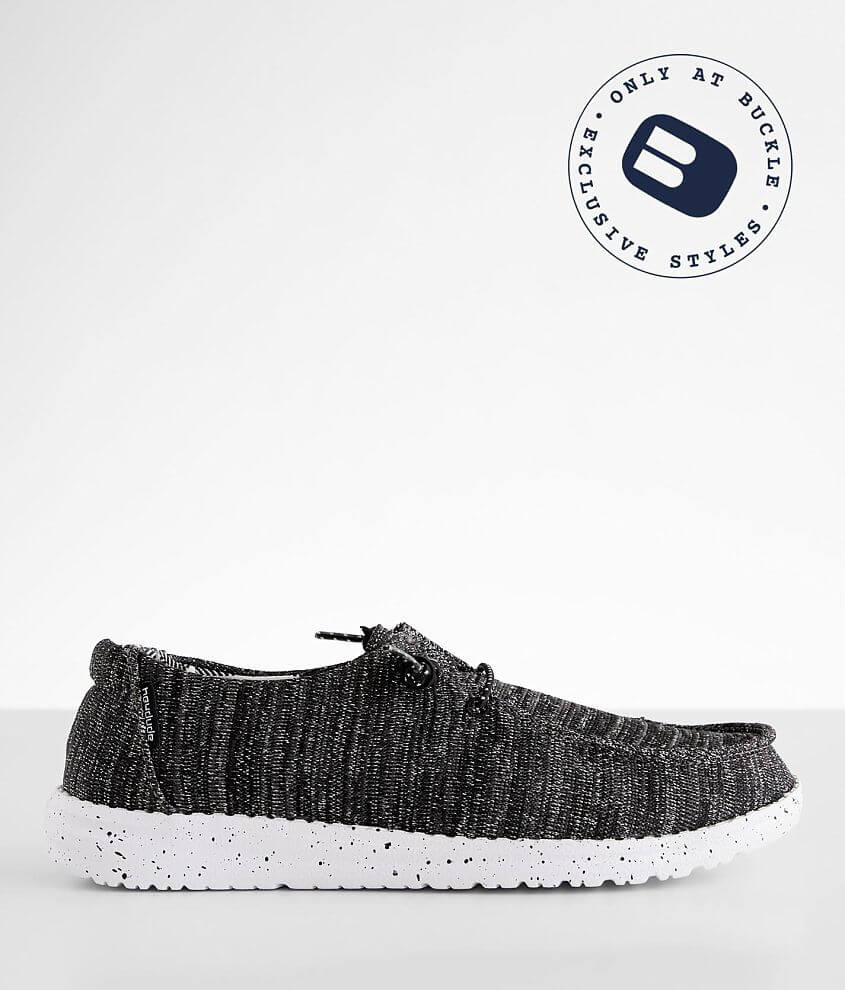 They feature a unique black sparkle to them with a shiny solid black heel. Womens Hey Dude Wendy Sox Sparkling Black. Details The Wendy Crochet embodies the Hey Dude lifestyle by combining your passion for comfort quality and fashion designed to be your lightweight ultra-comfortable Dude shoe for all occasions.